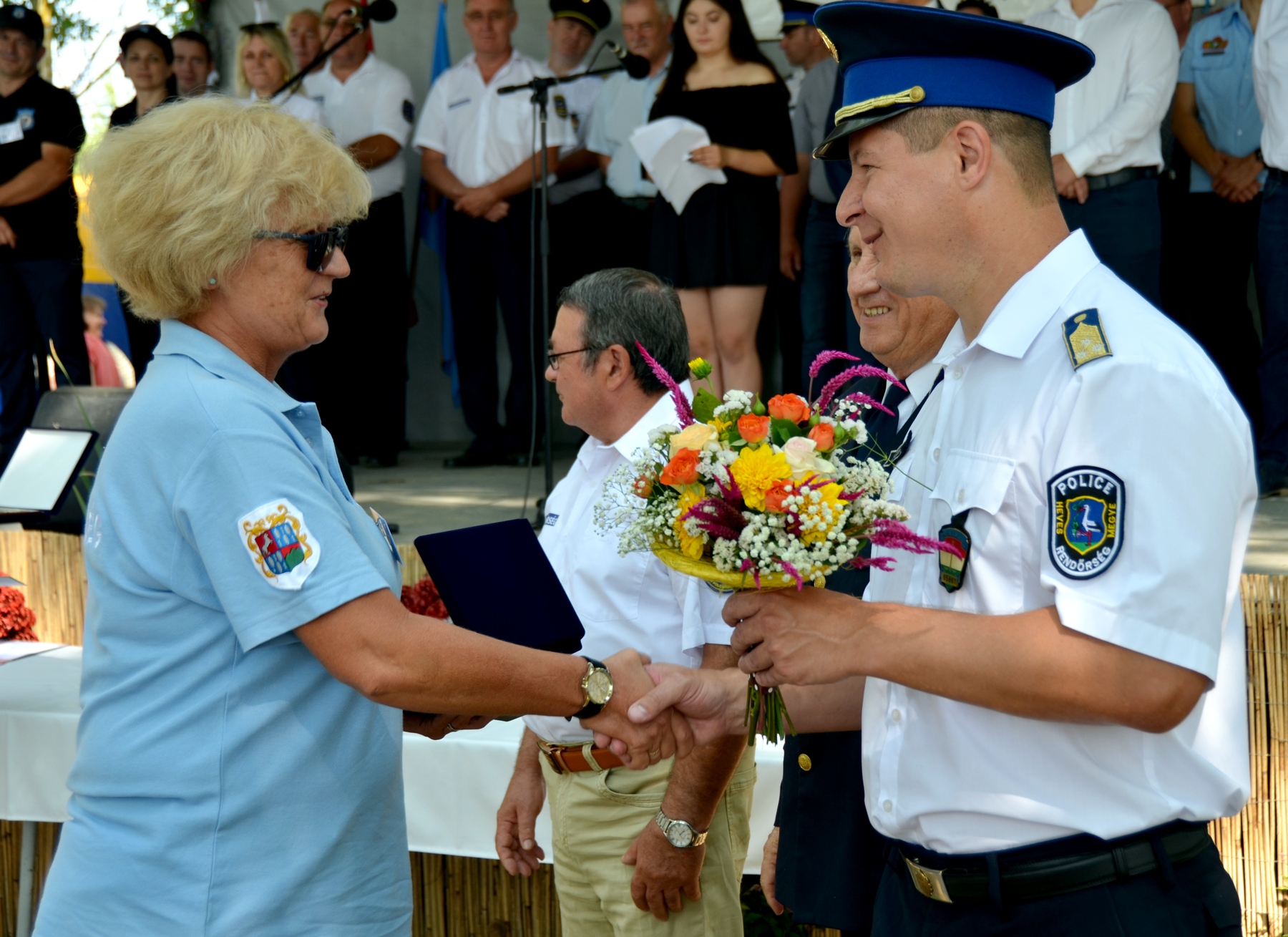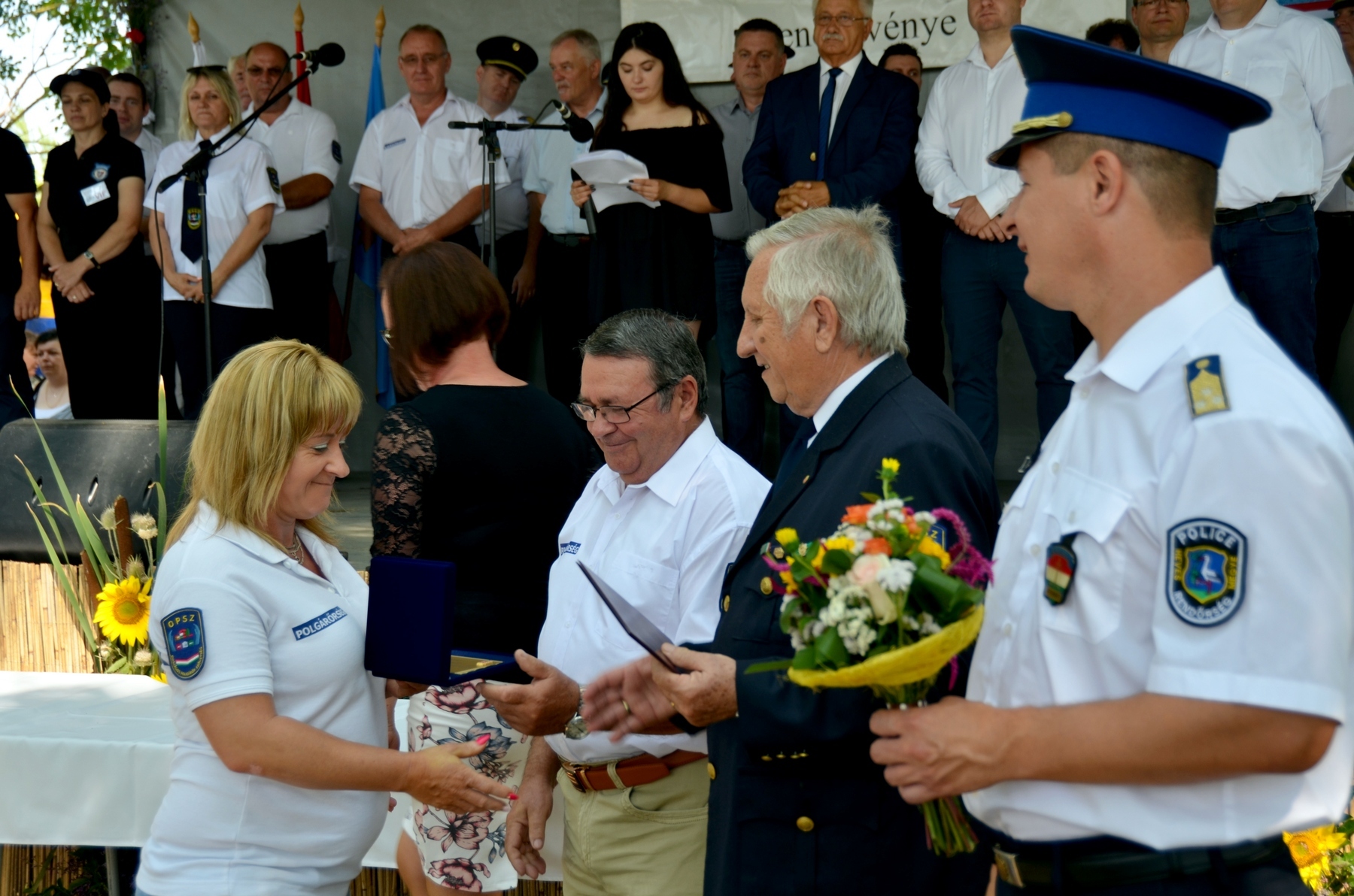 A résztvevõket köszöntõ dr. Tóth József, a vendéglátó település polgármestere – egyben a helyi polgárõrség elnöke – például elmondta, hogy a rendõrséggel összefogva sikerült jelentõsen, évi 350-rõl a hetedére csökkenteni a bûncselekmények számát. Csóra György, az Országos Polgárõr Szövetség elnökhelyettese kiemelte: ma Magyarországon nem lehet értékelni a közbiztonságot a polgárõrök nélkül. s ebben nagy szerepe van annak a csaknem 2900 önkéntesnek, akik a megye 96 egyesületében tevékenykednek. Ehhez csatlakozva mondta Szabó Róbert, a Heves Megyei Önkormányzat elnöke: megnyugtató tudni, hogy a megye minden száz polgárára jut egy áldozatkész polgárõr. Õk a mi megbízható társaink” – jelentette ki Széchy Zsolt r. ezredes, megyei rendõr-fõkapitányhelyettes, aki elmondta: együttmûködésük óta az eddigi legtöbbet, 58 ezer órát töltötték tavaly közös szolgálatban, amiért köszönet illeti elkötelezett segítõiket. Ugyancsak a köszönetét fejezte ki Völgyi Ferenc, a megyei polgárõr szövetség elnöke. Külön megemlítette azokat, akik ezen a napon is otthon maradtak, hogy óvják a lakosság nyugalmát.