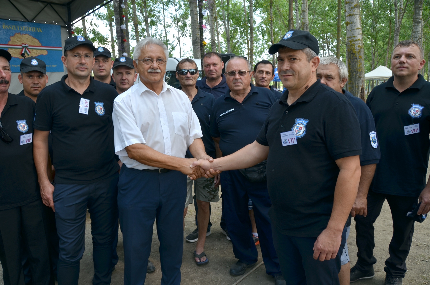 A forgatagban feltûnt egy, Paza Civila” feliratú pólót viselõ társaság: Tiszanána erdélyi testvértelepülése, Zetelaka tizenegy polgárõrrel képviseltette magát.